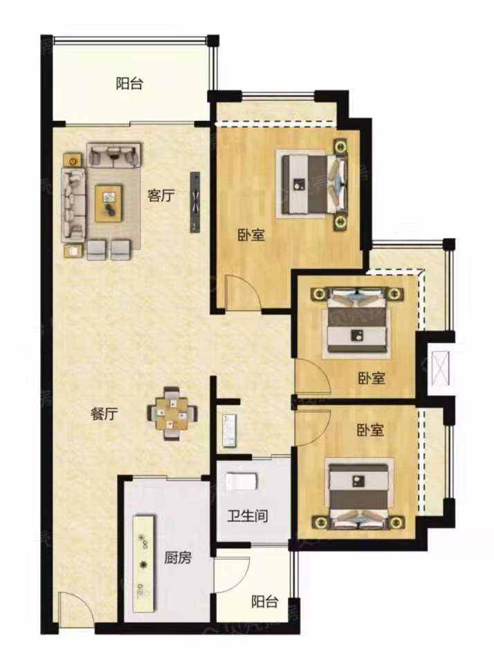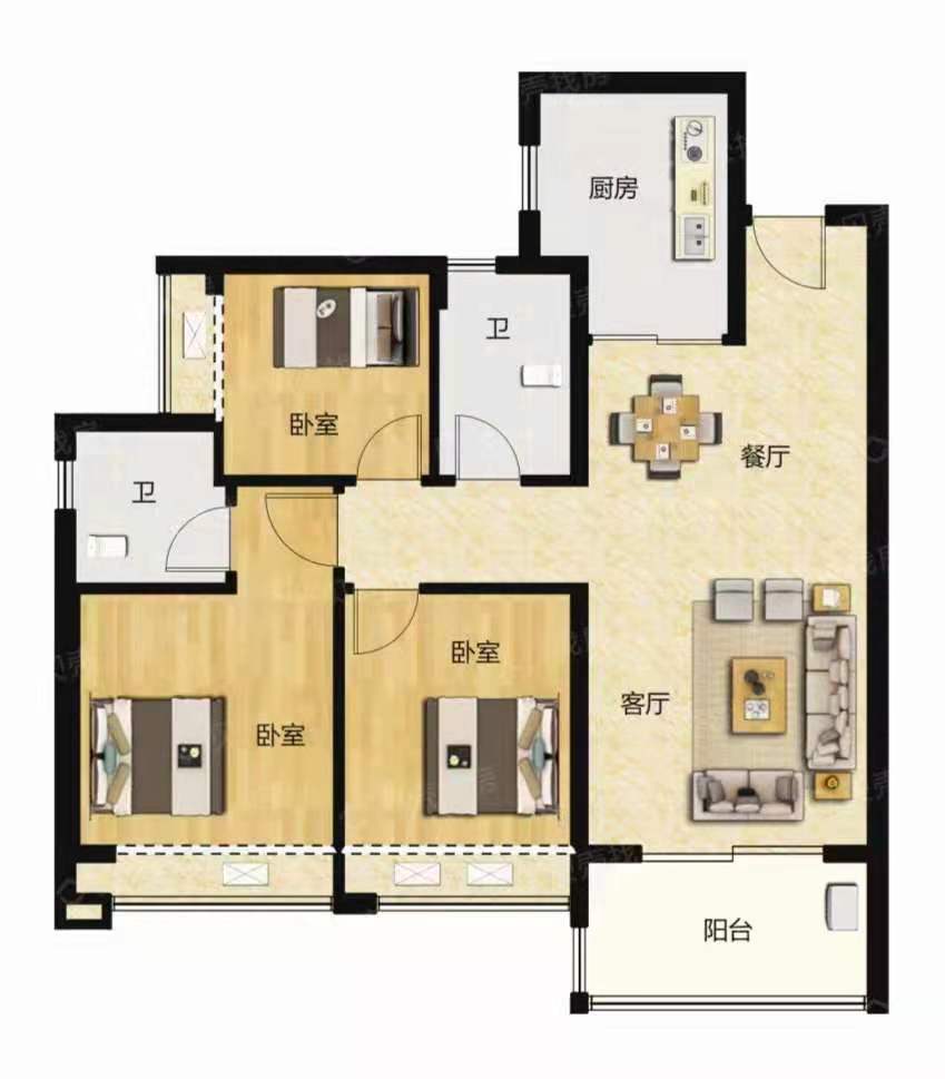 三房两厅107平 总价33万