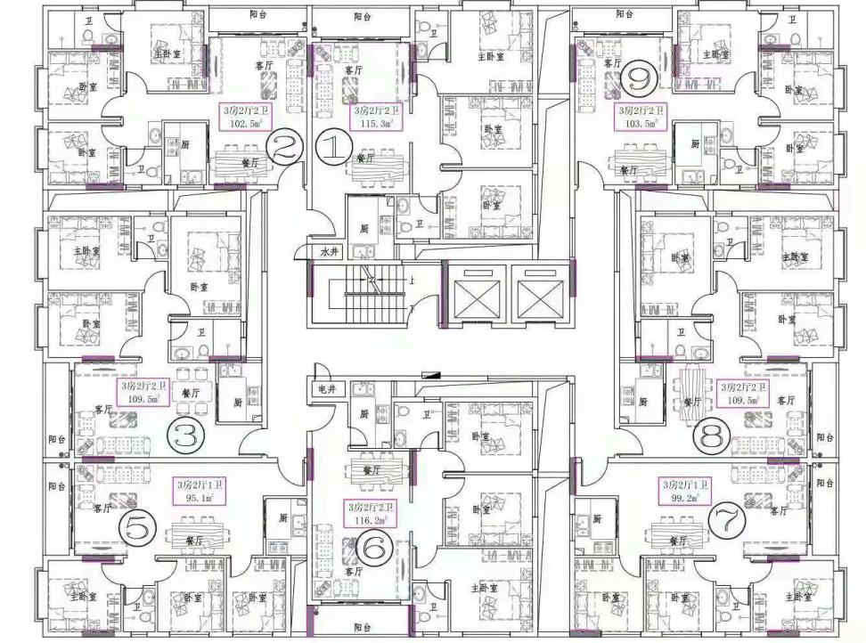 - 楼盘面积:95-116平