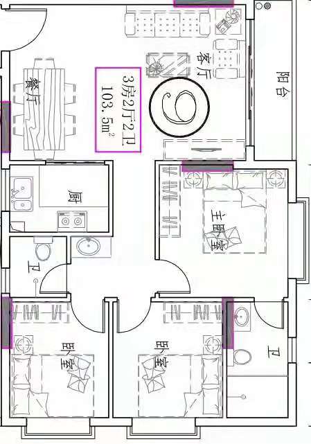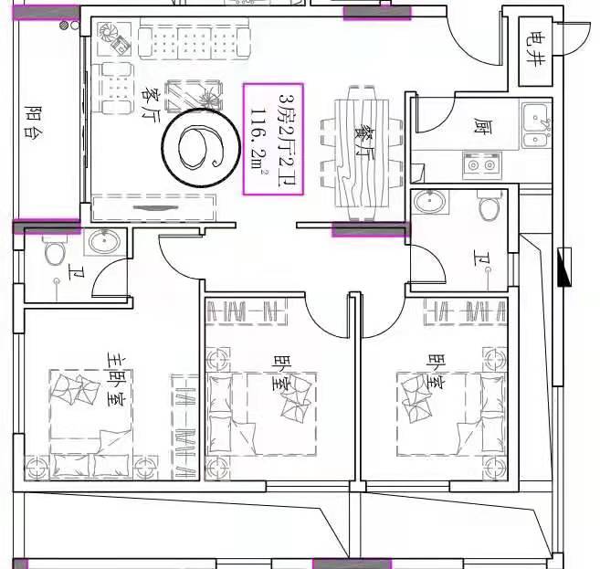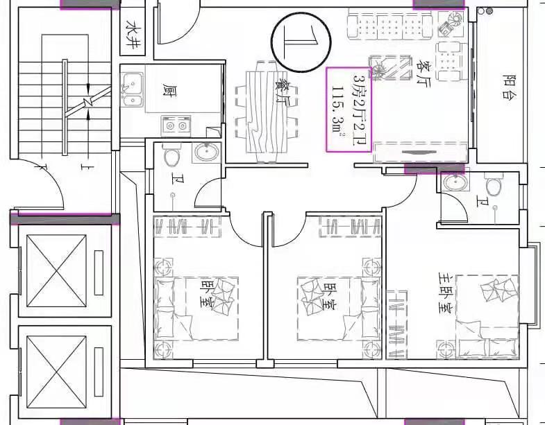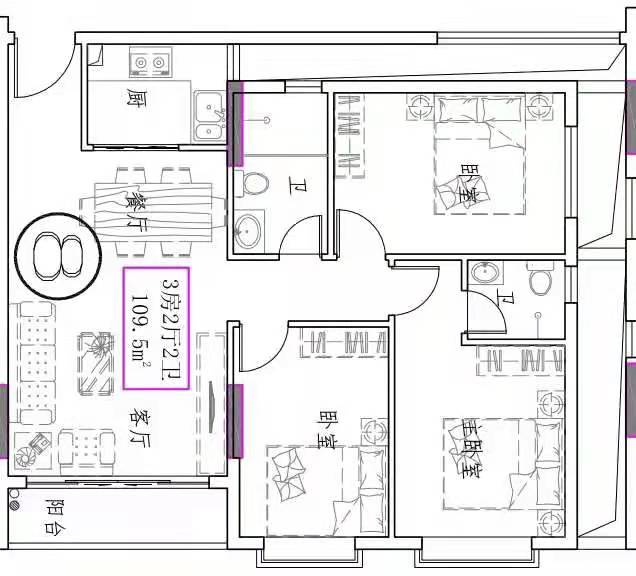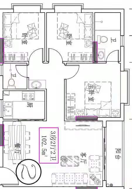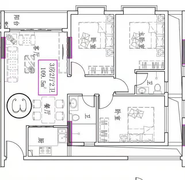- 楼盘户型:三房
