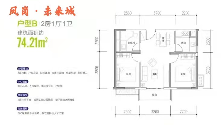 74平方2房2厅1卫 首付26万起,月供6500元起