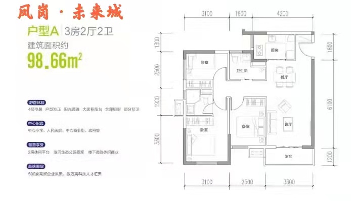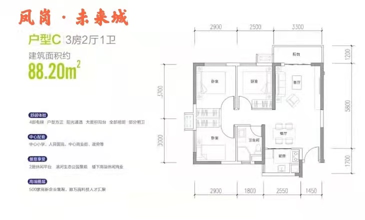 88平方3房2厅1卫 首付33万起,月供7800元起
