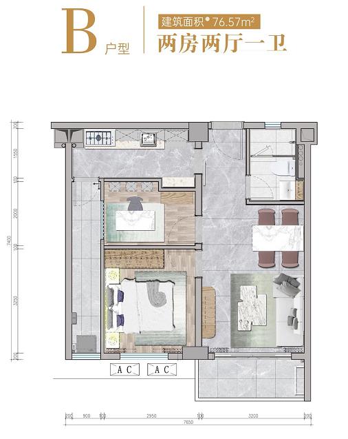 77㎡ 2房2厅1卫