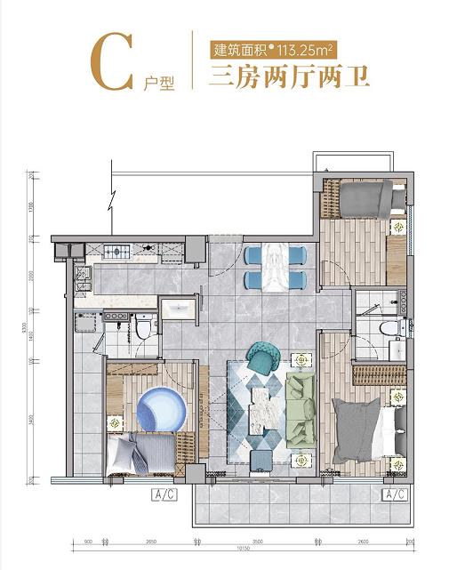 113㎡ 3房2厅2卫