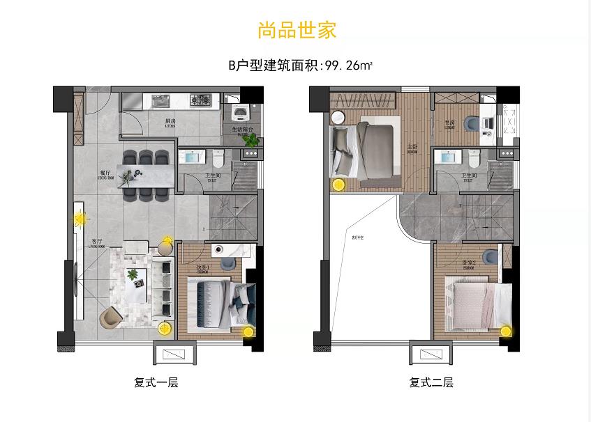 【产品价值】多样化产品,4.9米LOFT买一层送一层,满足不同居住需求:项目产品多元化,住宅为约58-128