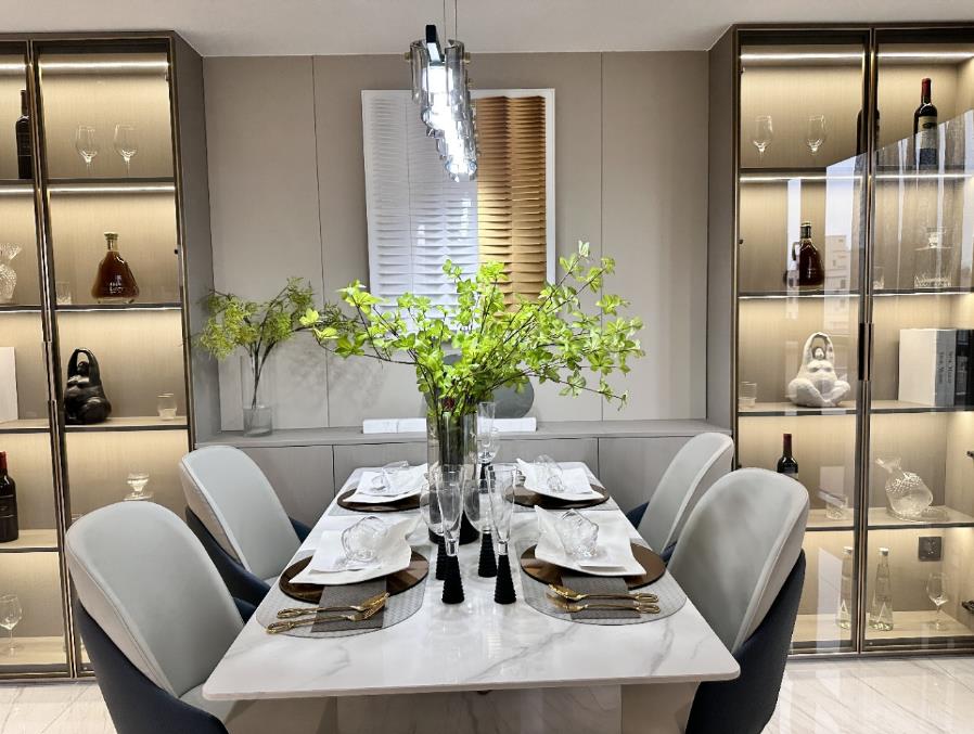 品质觉得生活:从外到内,外立面参照深圳湾一号上海的汤臣一品同等材质铝合金板材(防水防脱耐高温50年不变形),阳台是3 D立体真石漆,大堂按五星级酒店格兰云的标准设计,多数采用比大理石更高端的土耳其原石材,意大利进口的地板砖,包括楼上的公共部分也同样,入户大门用的是烤漆工艺的防爆铸铝门,电视背景墙采用是国内一线品牌优质岩板,阳台是中空双层隔音玻璃,咋们项目小到地漏,大到过道,大堂无一处不体现细节用心品质、恰到好处的配置,令人眼前一亮!!