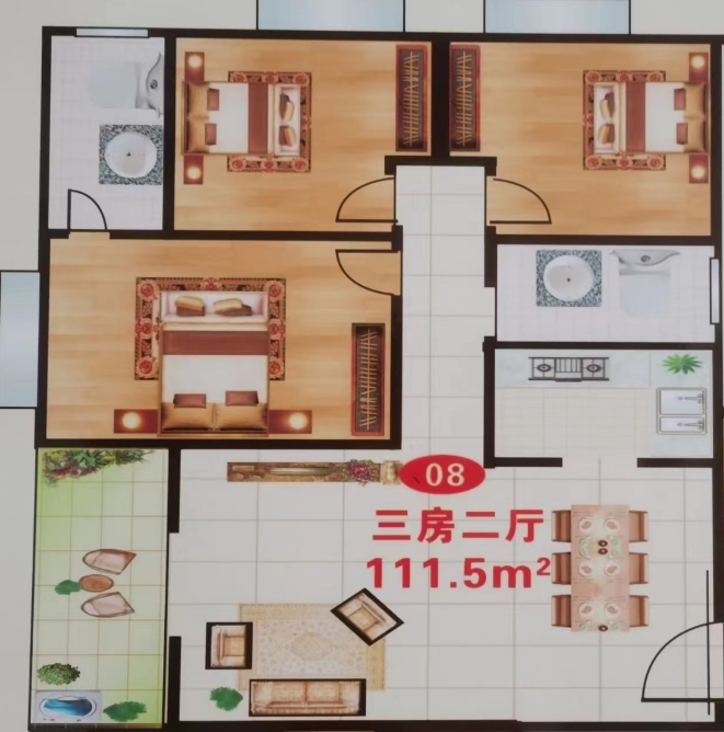 三房两厅两卫:100、105、111、116平